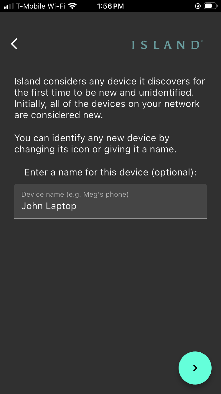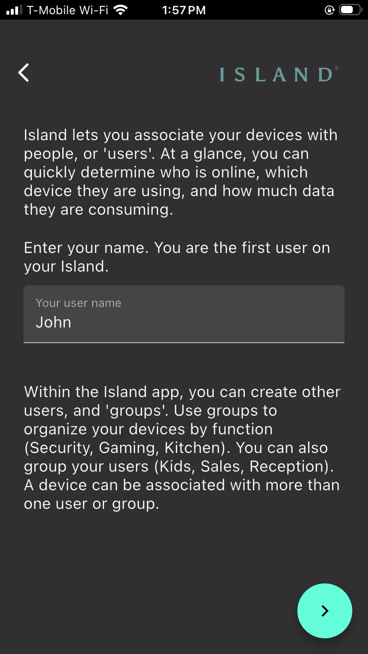 Launch the app. If the device you are using has been previously used to set up other Islands, see the note below. Otherwise, continue with Step 3.